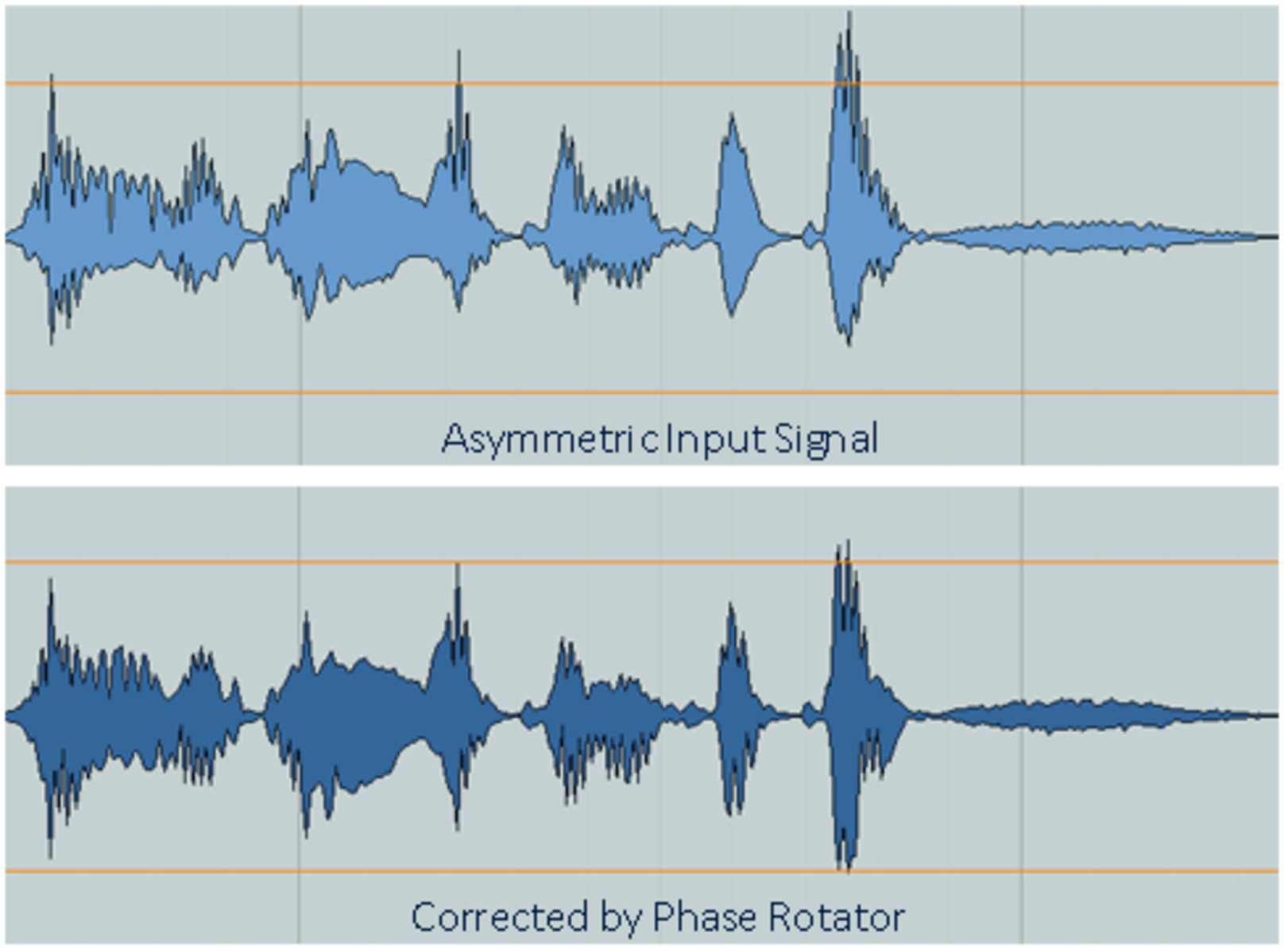 To overcome this issue the Phase Rotator algorithm uses a complex all-pass filter network to even out the half-wave energy distribution. Jünger Audio’s proprietary filter design does not impair audio quality and even takes the principle one step further.