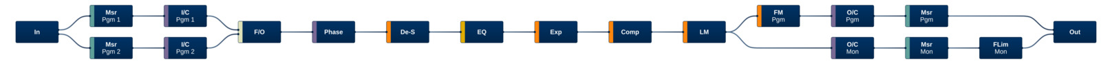 Our Stereo FM Conditioner for flexAI is the perfect solution for ensuring high-quality audio output in FM radio broadcasting as well as Streaming, DAB and other radio delivery formats. Including a fully featured audio processing chain with two outputs for FM pre-processing and low-latency monitoring or streaming applications. It guarantees consistent audio performance and compliance with FM broadcast standards. The processor is designed to operate seamlessly within the flexAI environment, providing optimal flexibility and performance.