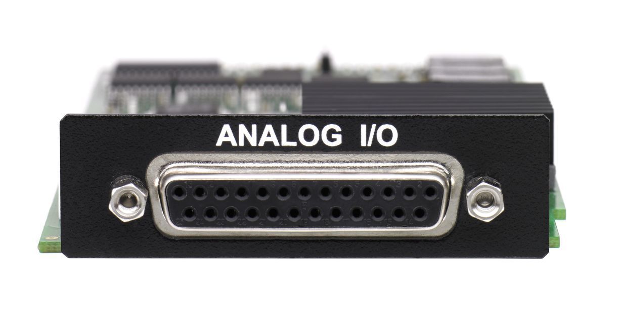 The Option Board 4ch analog I/O - accessory module designed for the SLIM LINE and flexAI processing platforms - providing 4 analog inputs and 4 analog outputs on a D-SUB25 connector.