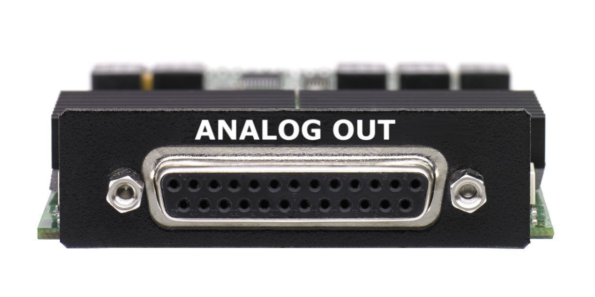 The Option Board 8ch analog Out is an I/O - accessory module designed for the SLIM LINE processing platforms - providing 8 analog outputs on a D-SUB25 connector.